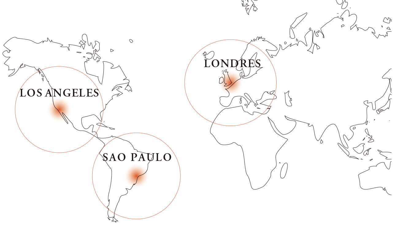 A JAPAN HOUSE está localizada em áreas proeminentes e de grande movimento em Londres, Los Angeles e São Paulo. A partir destes centros, o projeto está começando a estabelecer conexões, não apenas com pessoas já familiarizadas com o Japão, mas também, essencialmente, com pessoas que não tiveram a oportunidade de ter contato com o Japão anteriormente.